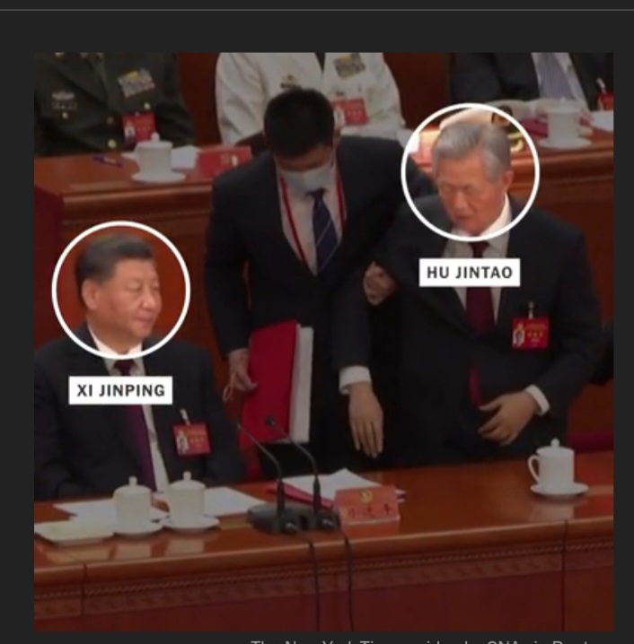 အသက် ၈၀ ရှိနေပြီ ဖြစ်သော ရှီ မတိုင်မီ ပါတီ အကြီးအကဲ ဖြစ်သူ ဟူ ဂျင်တောင် အား ၎င်း၏ ဆန္ဒပါပုံ မရဘဲ အခမ်းအနား စင်မြင့် မှ အစောင့်အရှောက်များ နှင့် ခေါ်ထုတ်သွားသည်ကို အခမ်းအနား တွင် ရှိနေကြသော ပါတီ ကိုယ်စားလှယ် ၂,၃၀၀ ကျော်က မယုံကြည် နိုင် လောက် အောင် တအံ့တဩ တွေ့လိုက်ကြရ၍ ကြက်သေ သေသွားခဲ့ကြသည်။